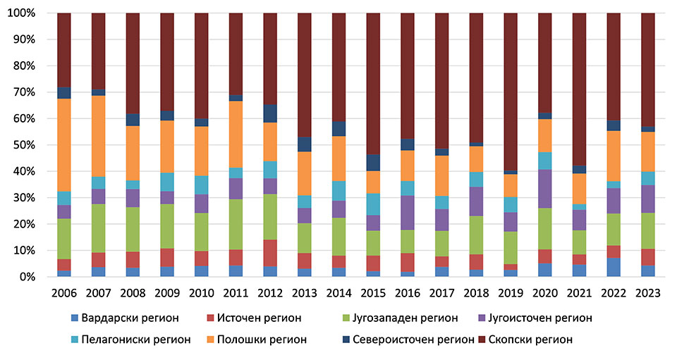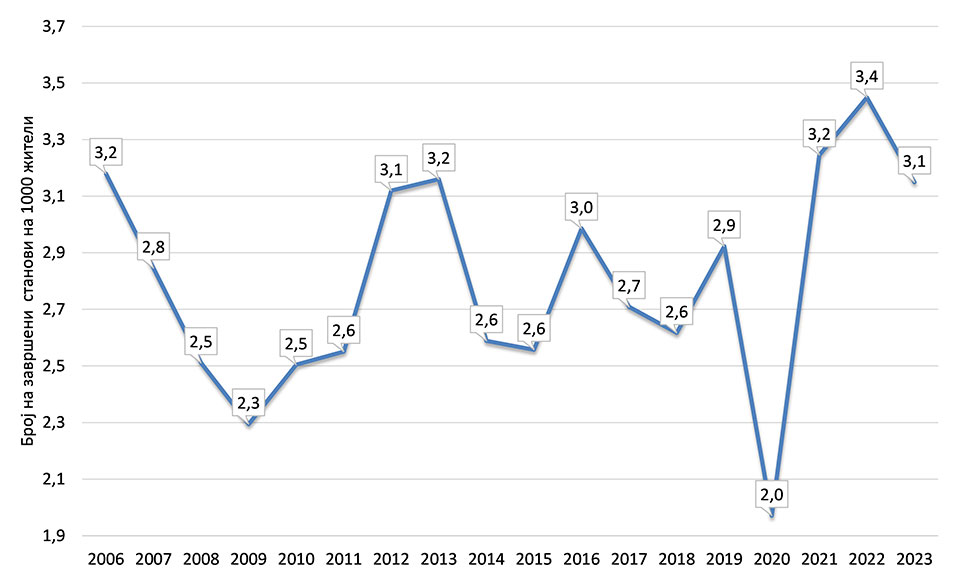 Порастот на завршени станови по региони, укажува дека во тој регион има најголем притисок врз животната средина во насока на ширење на населените места со што се предизвикува притисок врз транспортот, создавање отпад, зголемено загадување на воздухот, намалување на зелените површини генерално (јавни и приватни), зголемена изградба на објекти, зголемена бучава и други негативни влијанија врз животната средина. Спротивно на претходно кажаното, падот на бројот на завршени станови може да е последица на зголемена миграција на населението во останатите региони во кои има значителен пораст, особено во Скопскиот регион или миграција на населението во други земји.