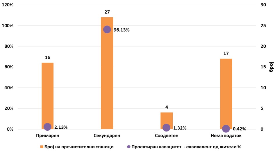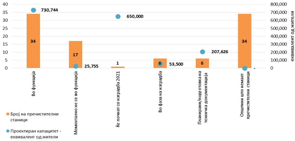 Во однос на бројот на изградени пречистителни станици постои потреба од пораст на тој број за да се опфатат што поголем број на домаќинства и индустрии од кои би се третирала отпадната вода пред да се испушти назад во природата. Исто така голем број од постоечките станици не се во функција што се должи на необезбедените средства за нивно континуирано одржување.
