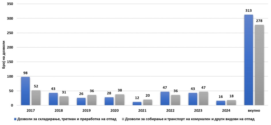 Иако обврската за известување кон ЕЕА е со 100% исполнетост истото не значи дека и законските обврски на засегнатите страни се исполнуваат континуирано или пак во целост. Недостатокот на податоци со кои располагаат државните органи оневозможува понатамошно следење на прогресот во однос на законските обврски. Во голем број, општините сеуште не ги доставуваат годишните извештаи за отпад, и истото се должи на недоволната информираност како и недостатокот од човечки и административни капацитети. Исто така дел од дефинициите, прописите и обврските се повторуваат на повеќе различни места при што создаваат конфузија и при постапката за издавање на дозволи за отпад. За успешно спроведување на законодавството веќе четири години по ред се пристапува кон одржување обуки за административните капацитети од областа на законодавната рамка за животна средина.
