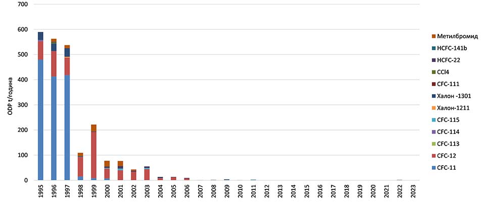 Имајќи го предвид степенот на елиминација на ODSs во Република Северна Македонија може да се каже дека процентот на елиминација на 100%, во разгледуваниот период, зборува за фактот дека нашата земја е многу понапред од обврските кои ги пропишува Протоколот.