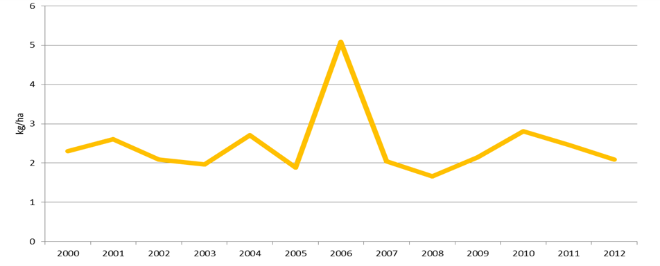 За жал, заради недостаток на податоци за пресметка, за индикаторите Употреба на минерални ѓубрива и Употреба на средства за заштита на растенијата постојат историски податоци од 2009 до 2012 година и за Бруто-Биланс на азот за период од 2000-2004 година.
