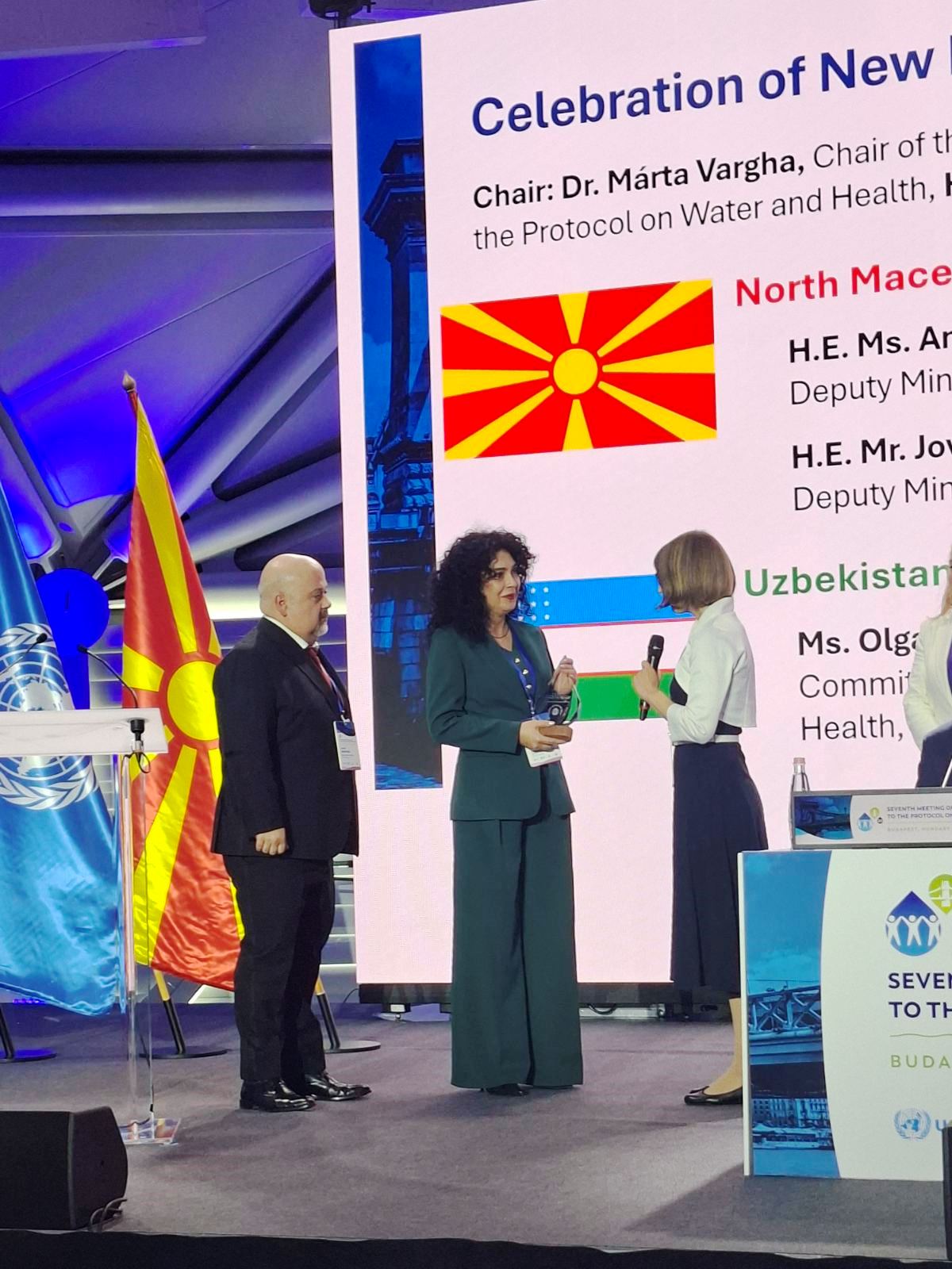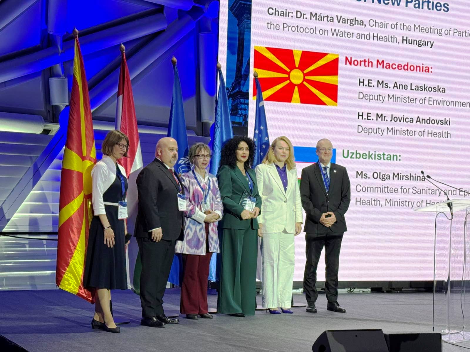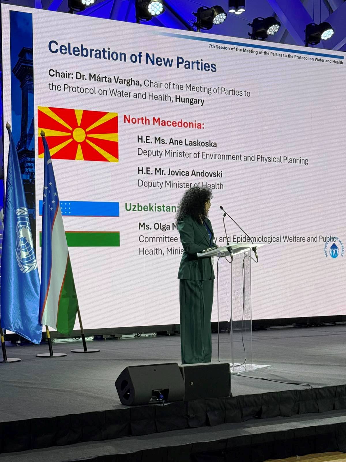 Будимпешта, 5–7 ноември 2025 година – Заменик министерката за животна средина и просторно планирање, Ане Лашкоска, и заменик министерот за здравство, Јовица Андовски, учествуваа на високиот сегмент на Седмото Собрание на страните на Протоколот за вода и здравје, организирано заеднички од Економската комисија на Обединетите Нации за Европа (UNECE) и Регионалната канцеларија на Светската здравствена организација за Европа (WHO/Europe), по покана на Владата на Унгарија.