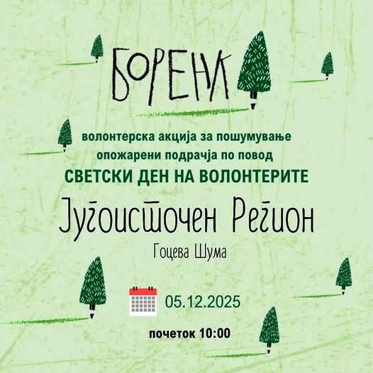Сојузот на извидници веќе трета година ја реализира меѓународната волонтерска акција „БОРЕНКА – Нацртај го своето дрво“, чија цел е обновување на опожарени подрачја преку вклучување на јавниот сектор, граѓанските организации и децата кои во текот на годината цртаа стебла од јаглен добиен од изгорени дрвца – симболично претворајќи ги денес во нови садници на терен.