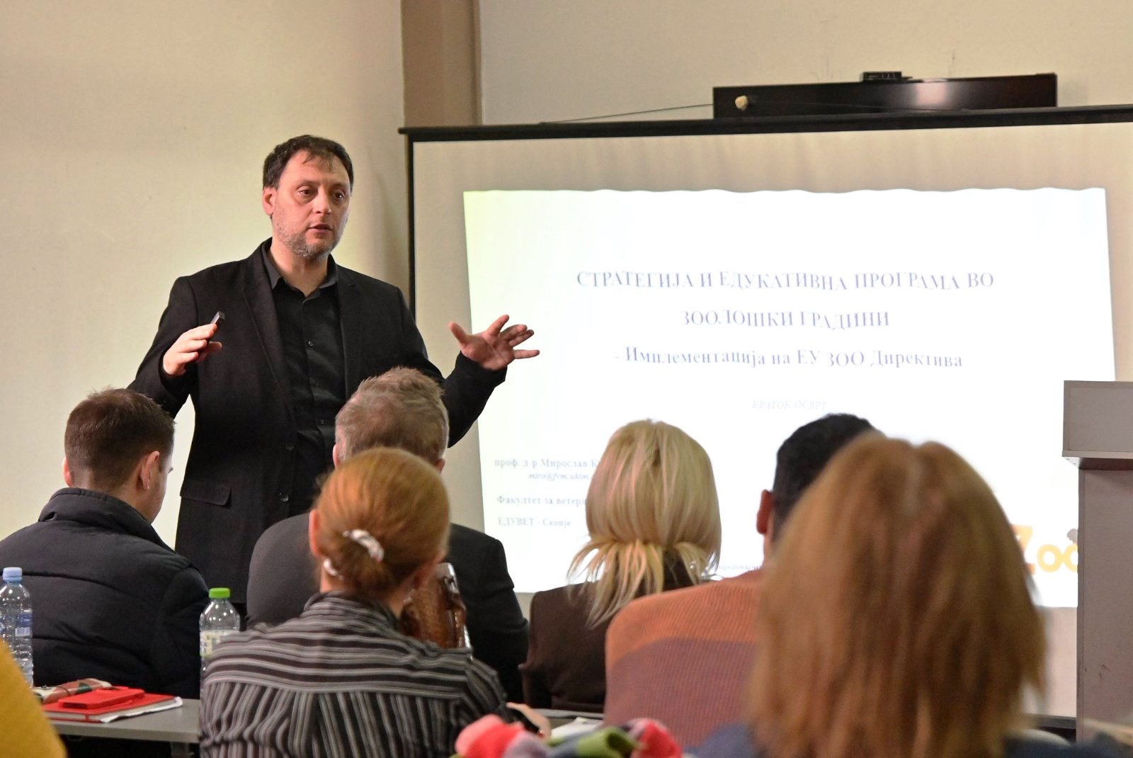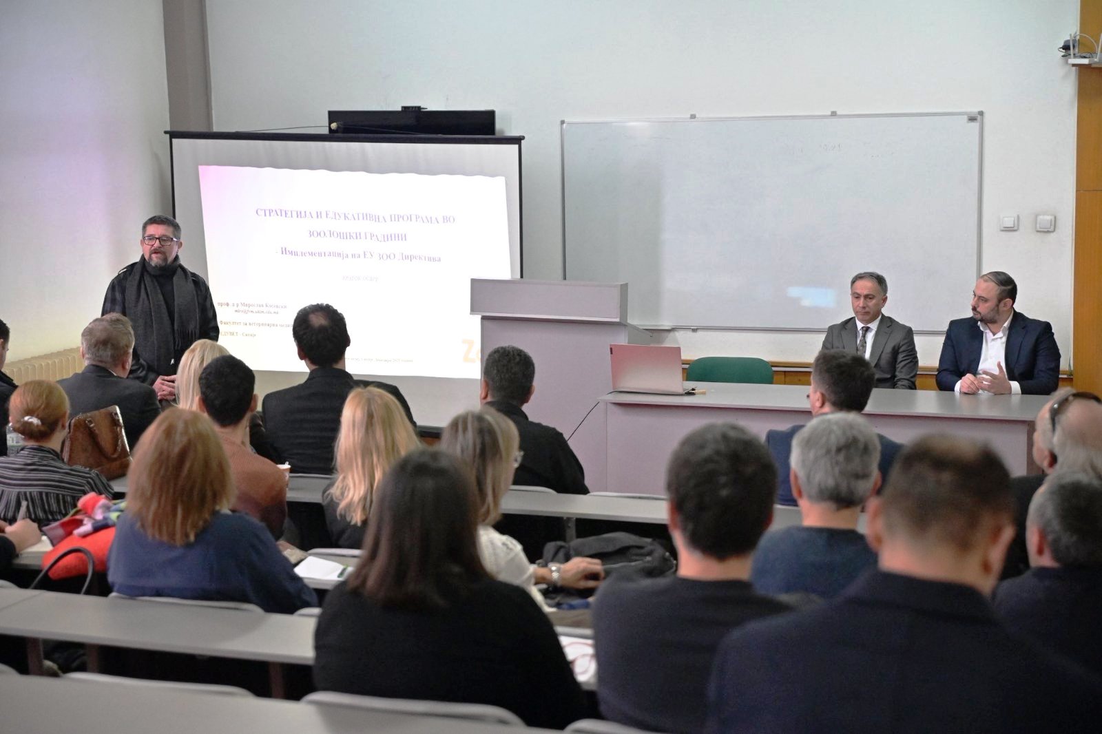 На настанот имаше поздраво обраќање од Директор на управа за животна средина Игор Никоски кој истакна дека МЖСПП/Сектор за природа е надлежна институција за следење на преговарачкиот процес со Европската Унија во рамки на Поглавје 27– Животна средина и климатски промени, а воедно и одговорно за транспозиција и имплементација на Директивата 1999/22/ЕЗ на Европскиот парламент и Советот за чување на диви животни во зоолошки градини (ЗОО директива) и дека правиме значеаен прогрес во ЕУ легислативата со оваа Стратегија.