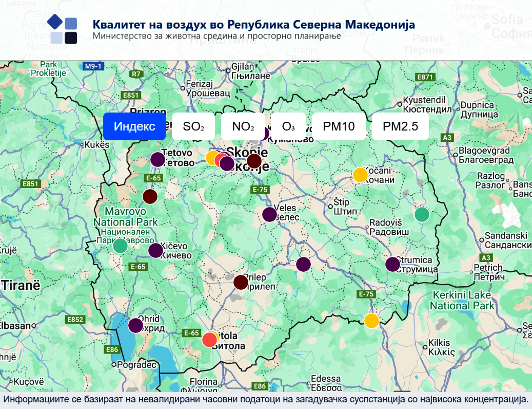 Ве информираме дека во функција е нов веб портал за квалитет на воздухот на МЖСПП на кој што може да пристапите преку постоечката адреса https://air.moepp.gov.mk. Податоците од сите мониторинг станици како и досега може да ги гледате во реално време. Новитет е тоа што истите се споредуваат со новиот индекс, кој е во согласност со Европскиот индекс за квалитет на воздух кој започна со примена од 04 јули 2025 година. Веб страната има подобрени перформанси, подобрени анализи во делот на надминувања на граничните вредности во тековната година како и годишни анализи за претходни години.