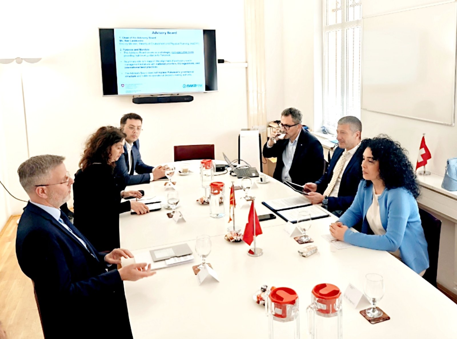 Скопје 23.04.2026 Заменик министерката за животна средина и просторно планирање, Ане Лашкоска, денес претседаваше со првиот состанок на Советодавниот одбор за паметно управување со отпадот од пакување, кој се одржа во просториите на Амбасадата на Швајцарската Конфедерација во Скопје.