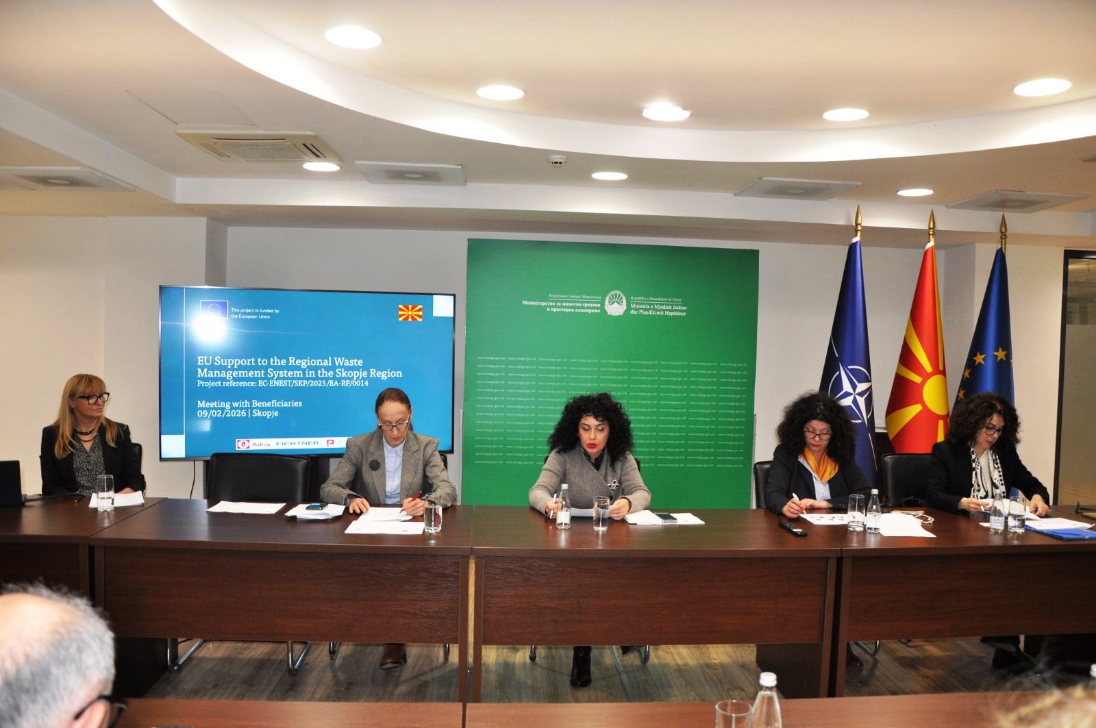 Министерството за животна средина и просторно планирање и Делегацијата на Европската Унија, заедно со компанијата LOUIS BERGER и партнерите од конзорциумот (FICHTNER GmbH & Co. KG, PLANET S.A. и ENOVA d.o.o.), денеска во Скопје одржаа иницијален состанок со кој официјално беше најавен почетокот на проектот „ЕУ поддршка за воспоставување на регионален систем за управување со отпад во Скопскиот регион“, целосно финансиран од Европската Унија преку ИПА III програмата.