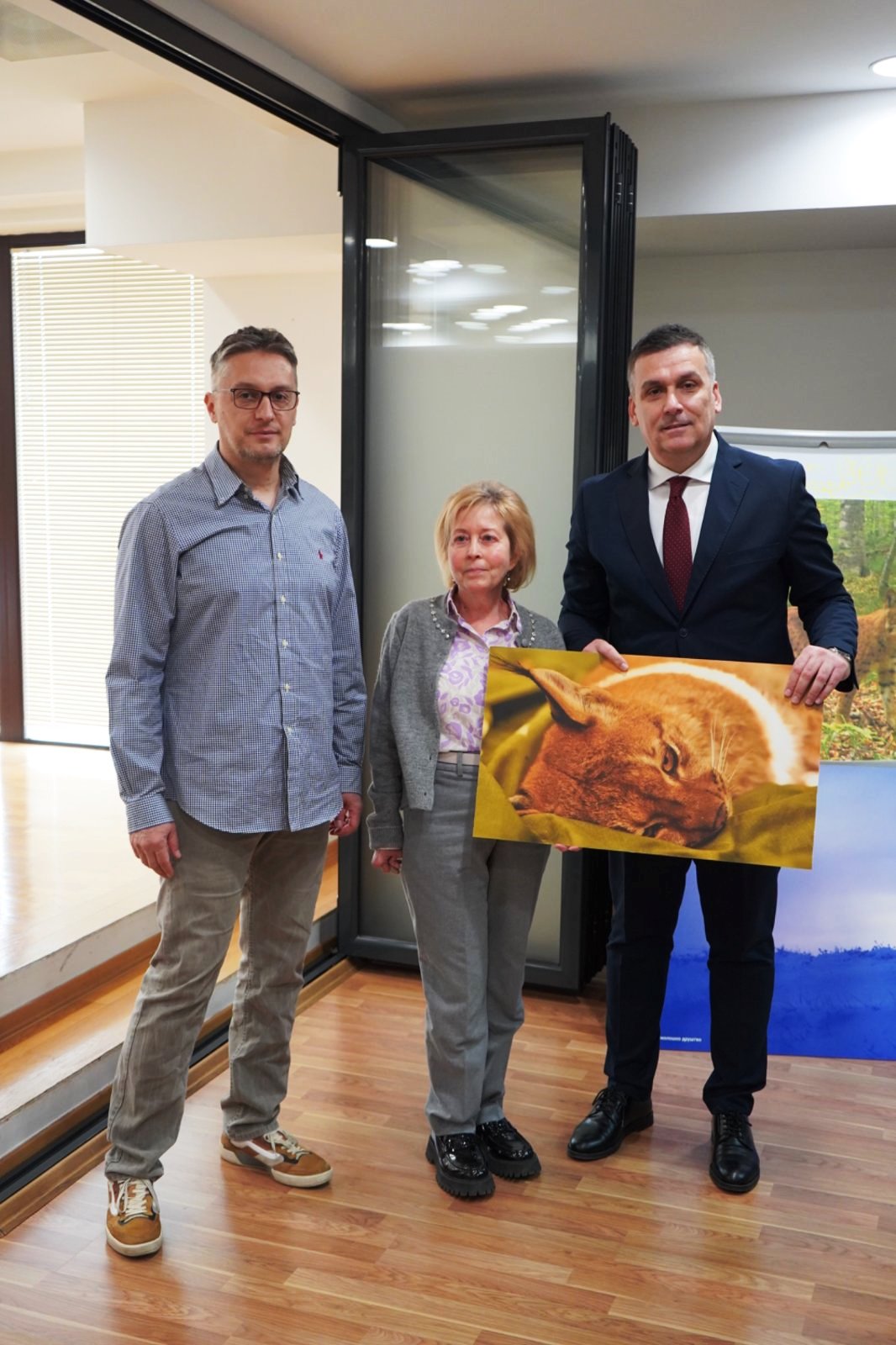 Претставниците на друштвото му подарија на министерот фотографии од балкански рис, документиран на двете страни од границата. Фотографиите ќе бидат поставени во Министерството како симболичен потсетник за важноста од регионален пристап во заштитата на природното наследство.