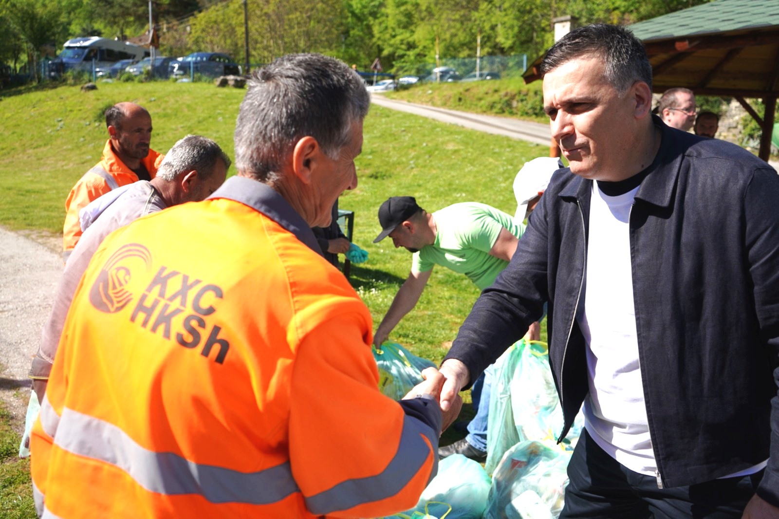 Скопје, 25.04.2026 Министерот за животна средина и просторно планирање, Муамет Хоџа, денеска се приклучи на волонтерите во голема акција за чистење на локалитетот Матка, едно од најзначајните природни богатства во земјава.